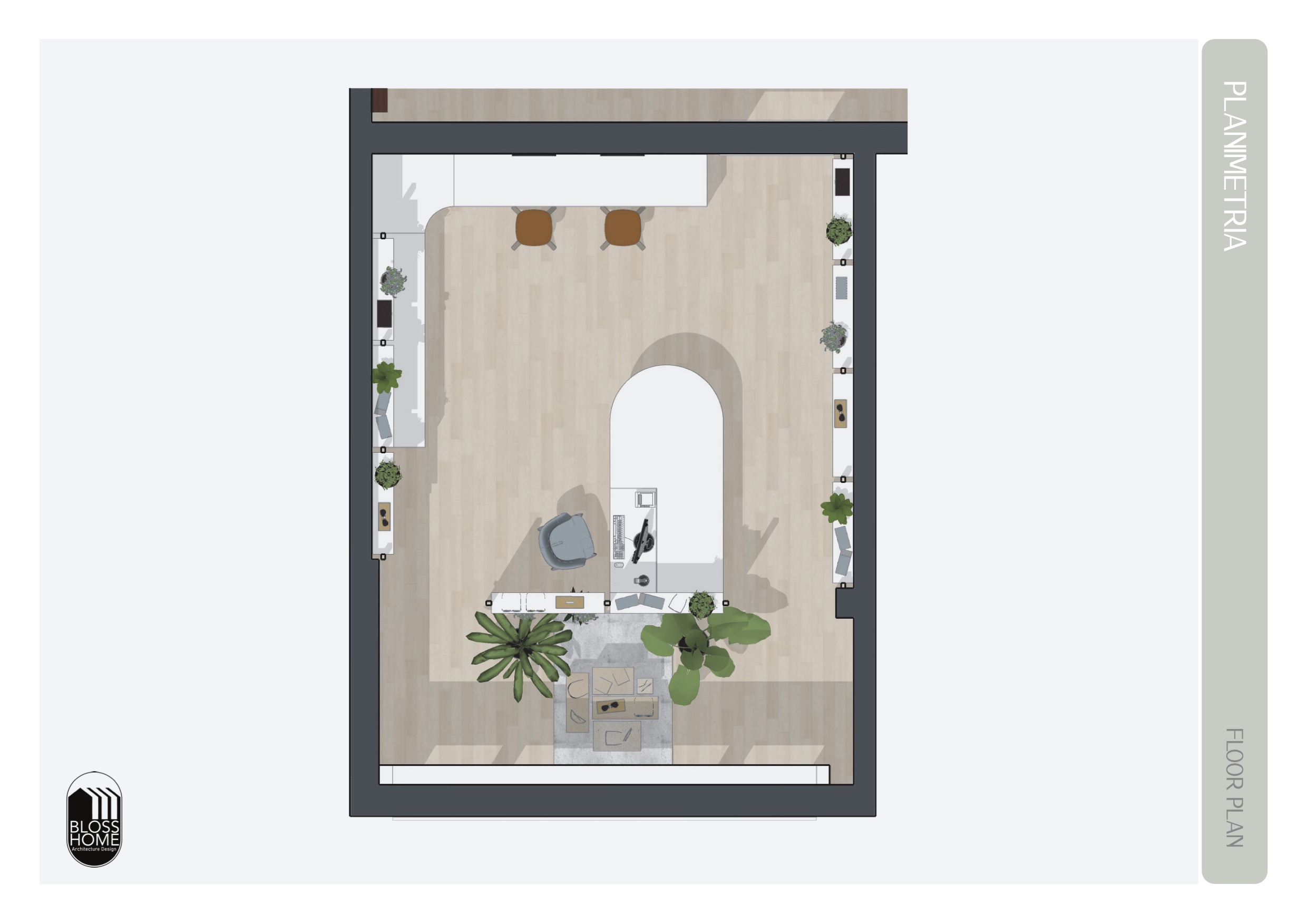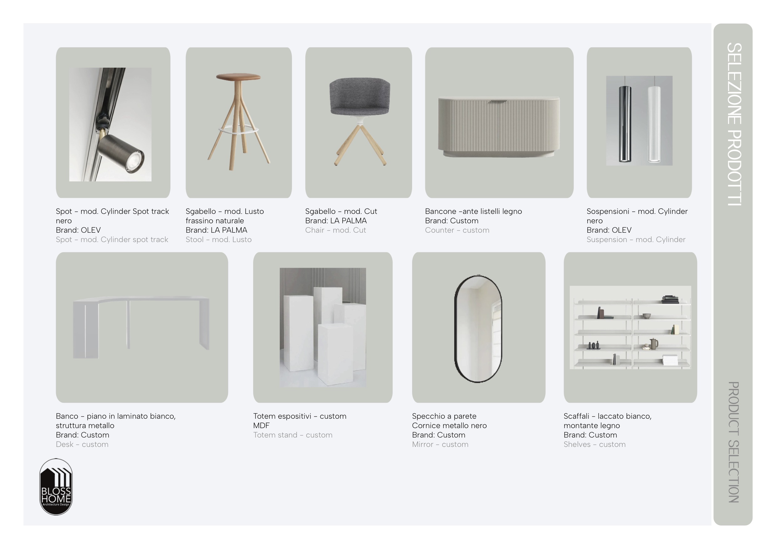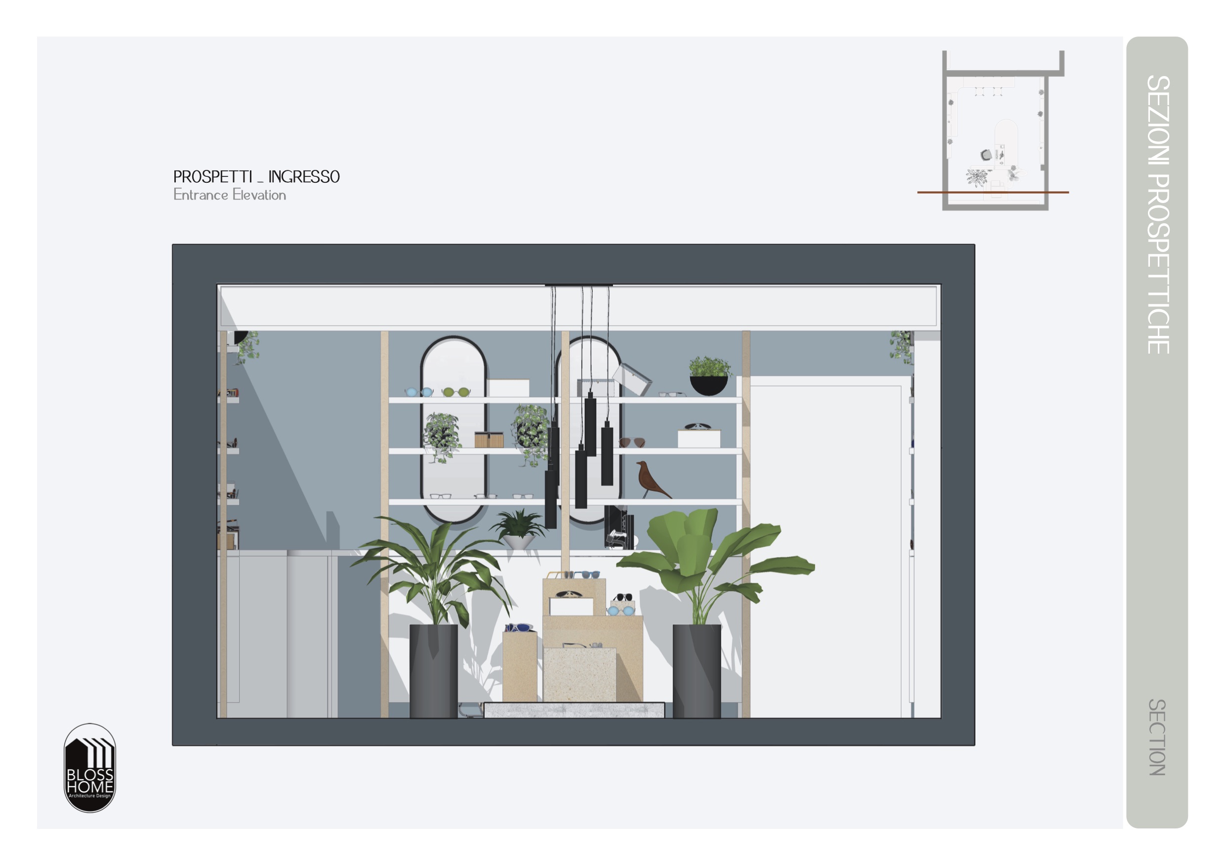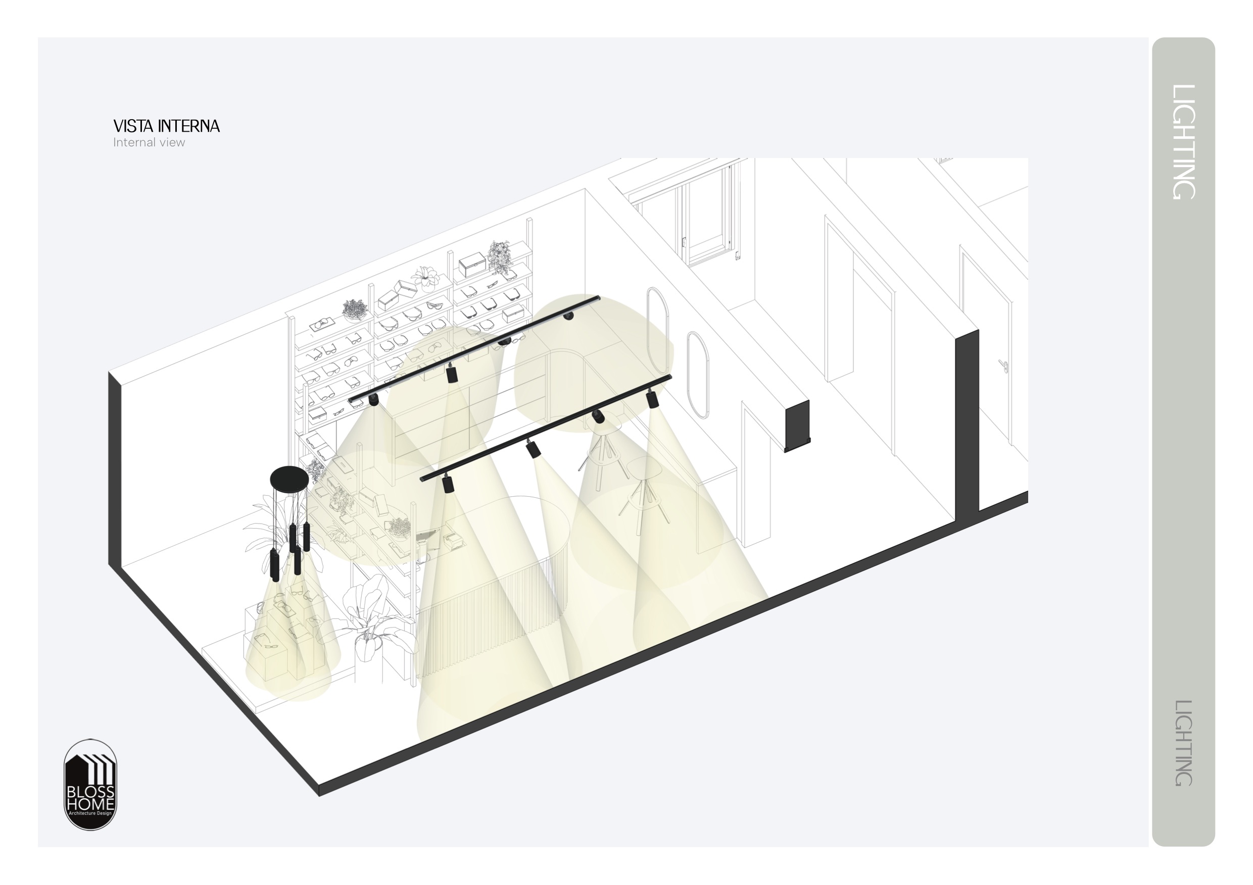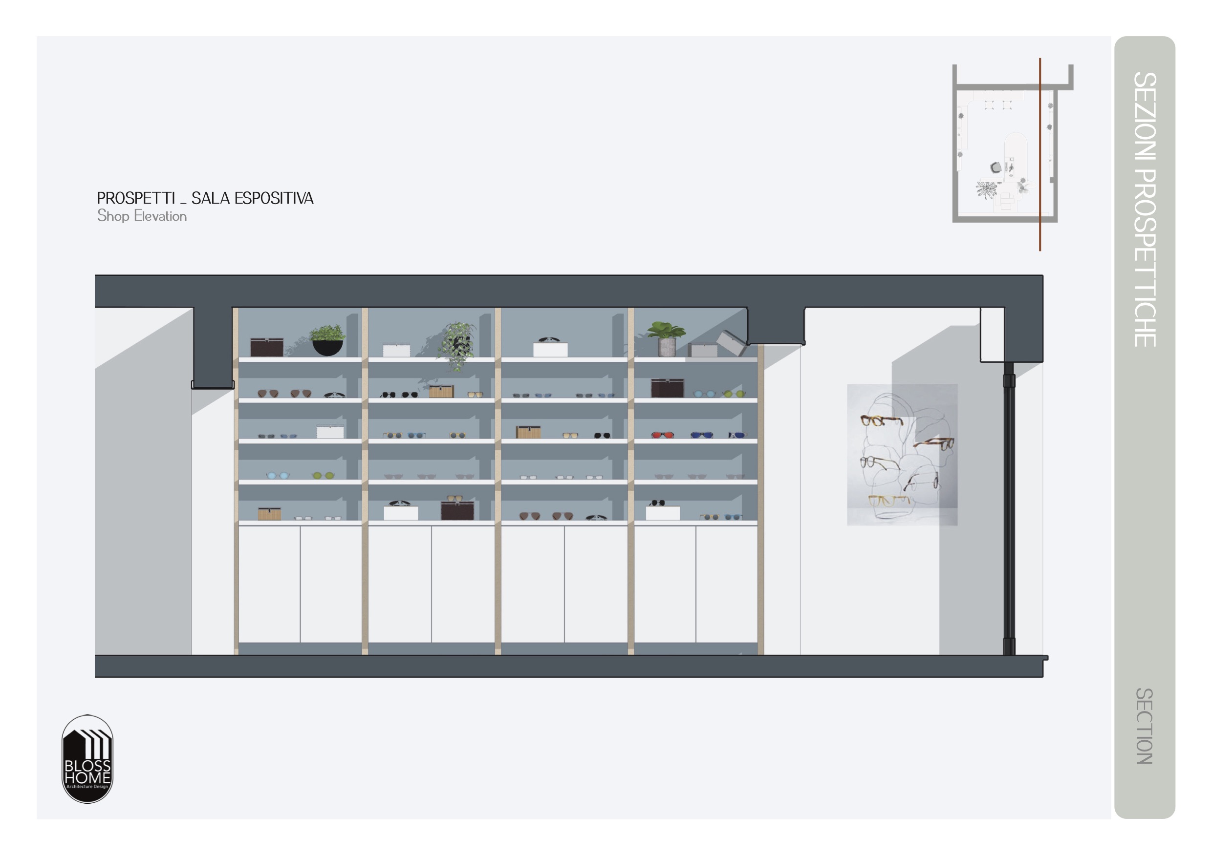 This project focused on designing a 30 sqm space dedicated to eyewear retail. The store has two entrances, which allowed us to create an internal flow centered around a custom-made curved counter. Raised platforms, display totems, and shelving were strategically designed to create an orderly, fresh-looking space that also enhances product visibility. Scroll the images to see the full project.
