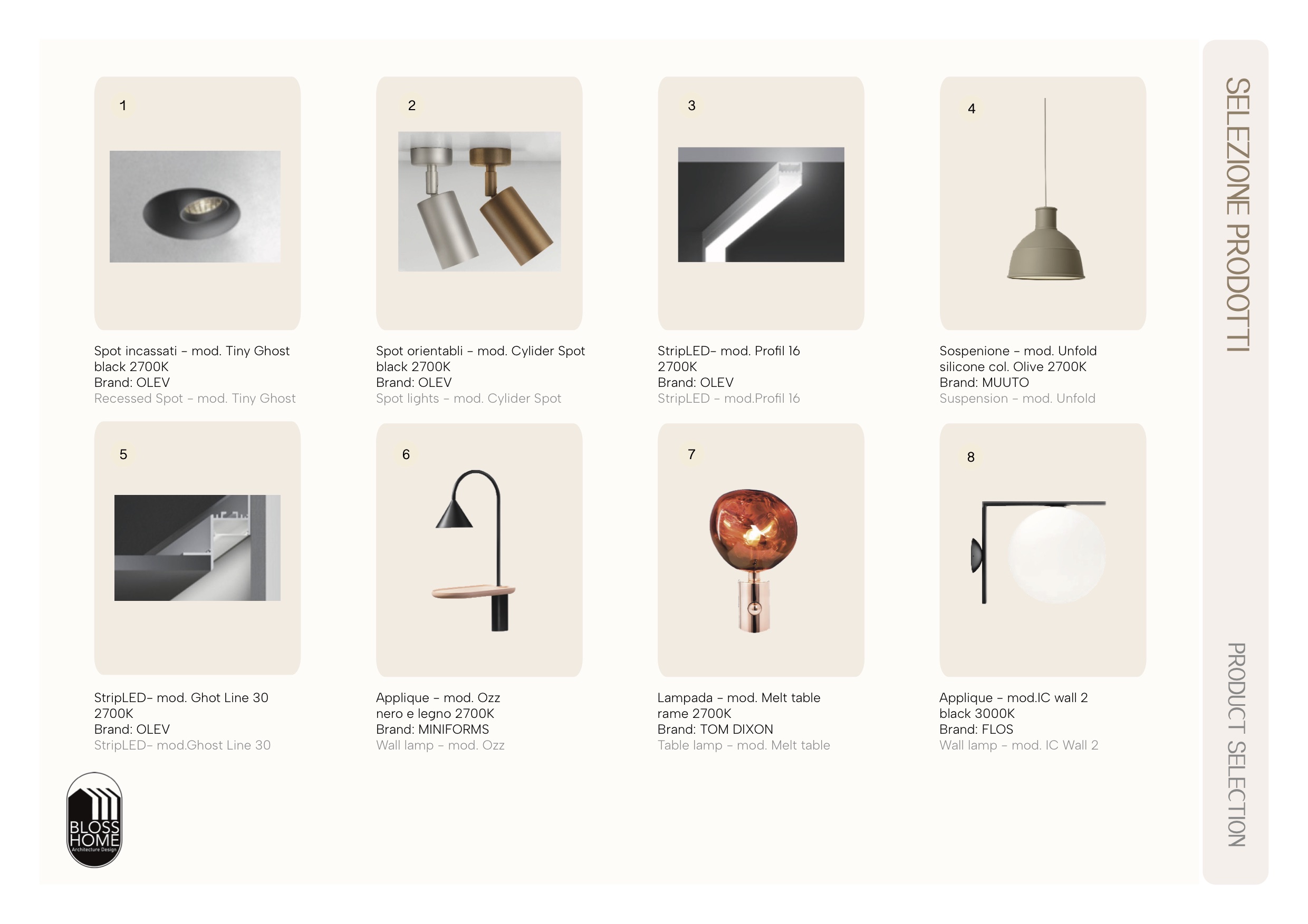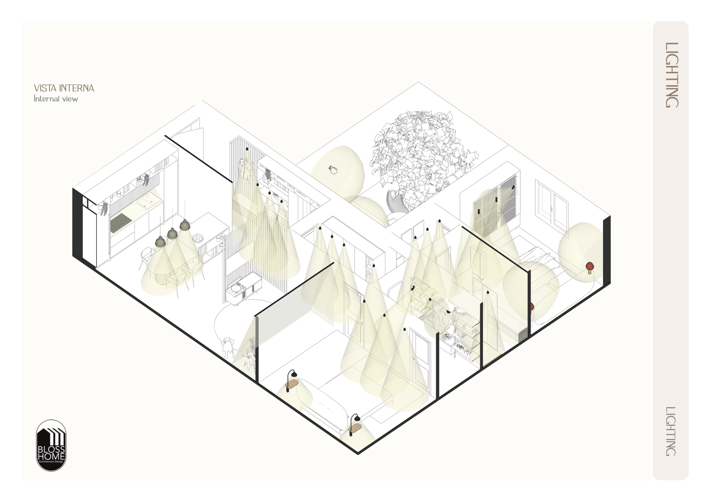 Il sistema illuminotecnico viene progettato indicando la scelta del corpo illuminante, il suo posizionamento/orientamento all’interno dell’ambiente e l’effetto complessivo con modello 3D. La luce diretta ed indiretta all’interno degli ambienti permette di utilizzare lo spazio in maniera funzionale. Es: se interessa avere il progetto per un intero appartamento completo di 4 ambienti (zona giorno, cucina, camera, bagno) selezionare il pulsante 4.